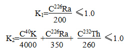 我國制定的建筑材料放射性衛(wèi)生防護標準(GB6566-86),對用與住房和公共生活用房的建筑材料,要求同時滿足下述兩式: