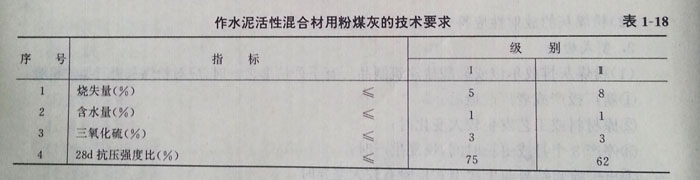 (2)水泥生產(chǎn)中作活性混合材的粉煤灰應(yīng)滿足表1—18的要求。