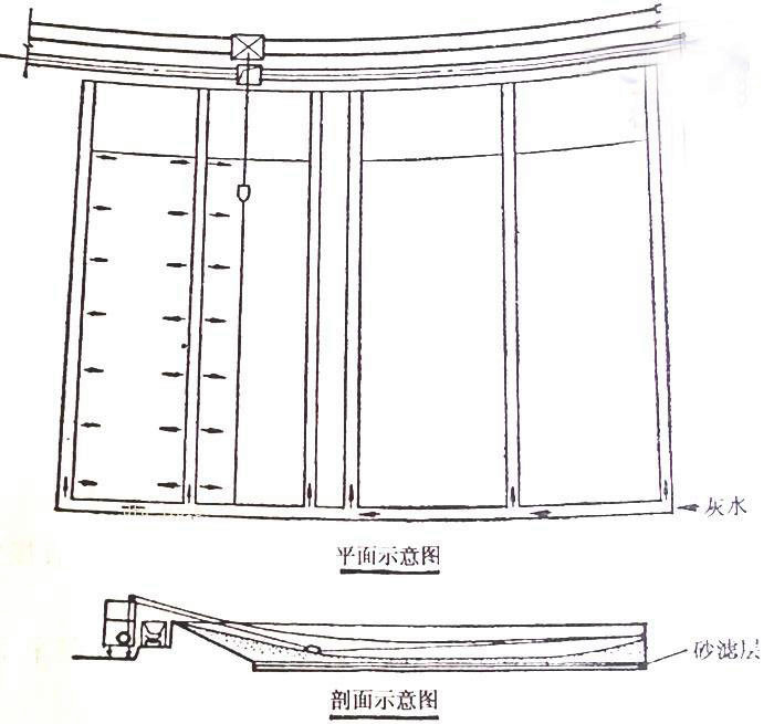在沉灰池下鋪設(shè)沙濾層作為過濾介質(zhì),用真空泵通過沙濾層下部敷設(shè)的真空管道,使濾層中形成負(fù)壓,從而將粉煤灰顆粒間的附著水吸出,達(dá)到進(jìn)一步降低粉煤灰含水率的目的。
