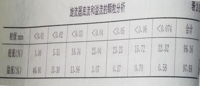 有兩種可供選擇的濃縮工藝,一是耙式濃縮機(jī),一是水力旋流器。對(duì)這兩種濃縮工藝都用模擬設(shè)備進(jìn)行了試驗(yàn),試驗(yàn)結(jié)果如下: