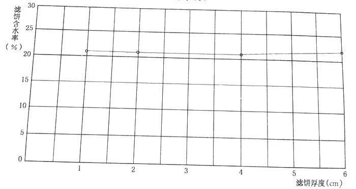 說,阻力越大,水分越容易排出。濾渣層厚的增大,阻力必然增大,濾餅含水率會(huì)提高。試驗(yàn)表明(圖2-13),濾餅厚度在4cm以下時(shí),對(duì)其含水率影響很小;超過4cm時(shí),影響大一些,但總的來看,濾餅厚度對(duì)其含水率的影響不起決定性作用。為了提高離心機(jī)的生產(chǎn)效率,在設(shè)計(jì)粉煤灰懸浮液專用離心機(jī)時(shí),要考慮適當(dāng)增加濾餅厚度。