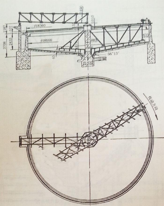 試驗(yàn)設(shè)備是當(dāng)時(shí)北京學(xué)院的直徑700mm的模擬式濃縮機(jī)。