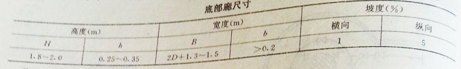 ④:底部通廊的布置,見圖2-34,相關(guān)尺寸見表2-38.通廊應(yīng)設(shè)排水溝其寬度不小于0.2m,坡度不小于5%,坡向泵房。