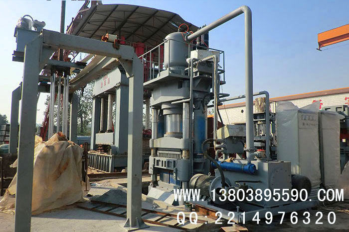 原料處理完之后,料箱里的物料經(jīng)過(guò)推拉缸的作用在主機(jī)??蚶飦?lái)回移動(dòng),提高物料的均勻度,由主機(jī)高壓壓制成型,成型后由機(jī)械手直接碼垛至蒸養(yǎng)小車。